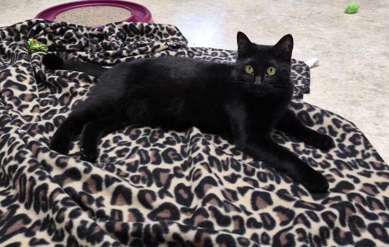 1. EBONY, 2 yrs, is a very sweet young lady with shiny black fur and big gold eyes. She has problems with allergies about twice a year. Her tummy gets all red and itchy and she needs to have shots and a course of prednisone. It is hard for people to take on a kitty with issues. Still, we are hoping someone will give Ebony a chance for a home.