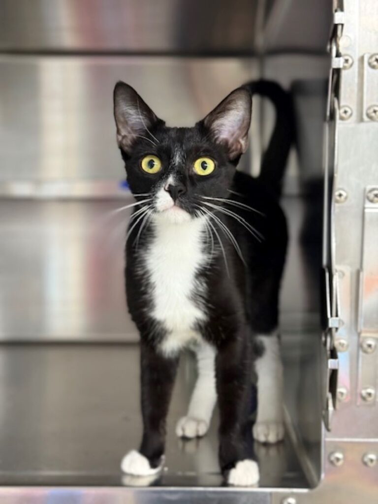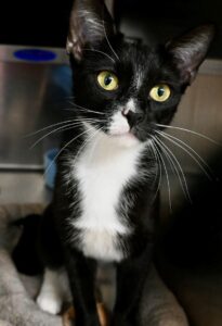 Tracy, 1 ½ years, short haired black/white, stands very tall. She is energetic and playful. Loves pats, but not a lap cat. Tracy loves to sit in the window. She would do best as an only cat. For more information on Tracy, contact Marilyn at neadycats@charter.net .